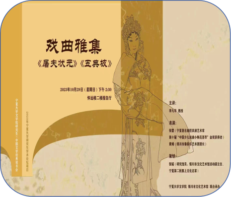高雅艺术进校园,文化盛宴润心田。为进一步传承中华民族优秀传统文化,激发学生阅读经典的兴趣,营造良好的学术交流氛围,提升学生的审美情趣和艺术素养,10月29日下午2点半,2023年yl6809永利官网研究生学术论坛项目“中国文学经典读书会”第6期《屠夫状元》《五典坡》戏曲专题雅集在怀远楼二楼报告厅举行。
