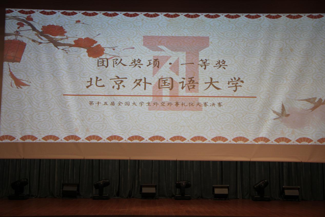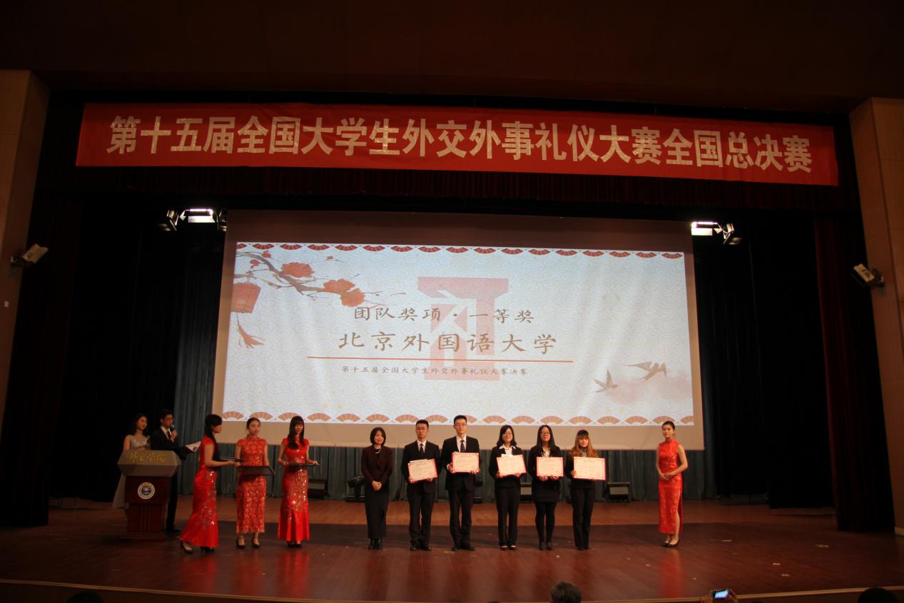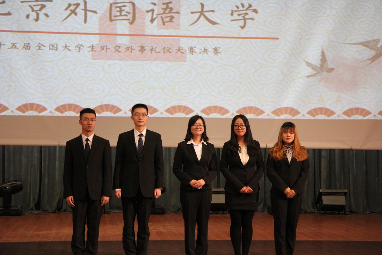 11月26至27日,第十五届全国大学生外交外事礼仪大赛在外交学院成功举行,来自澳门大学、北京大学、清华大学、外交学院等全国各地的三十支代表队展开了激烈角逐。最终,由pp电子官网2014级本科生徐颖、尚凌锋,2015级本科生李明阳,西班牙语葡萄牙语系2015级本科生程龙、杨裕嘉五位同学组成的北京外国语大学代表队获得了冠军。