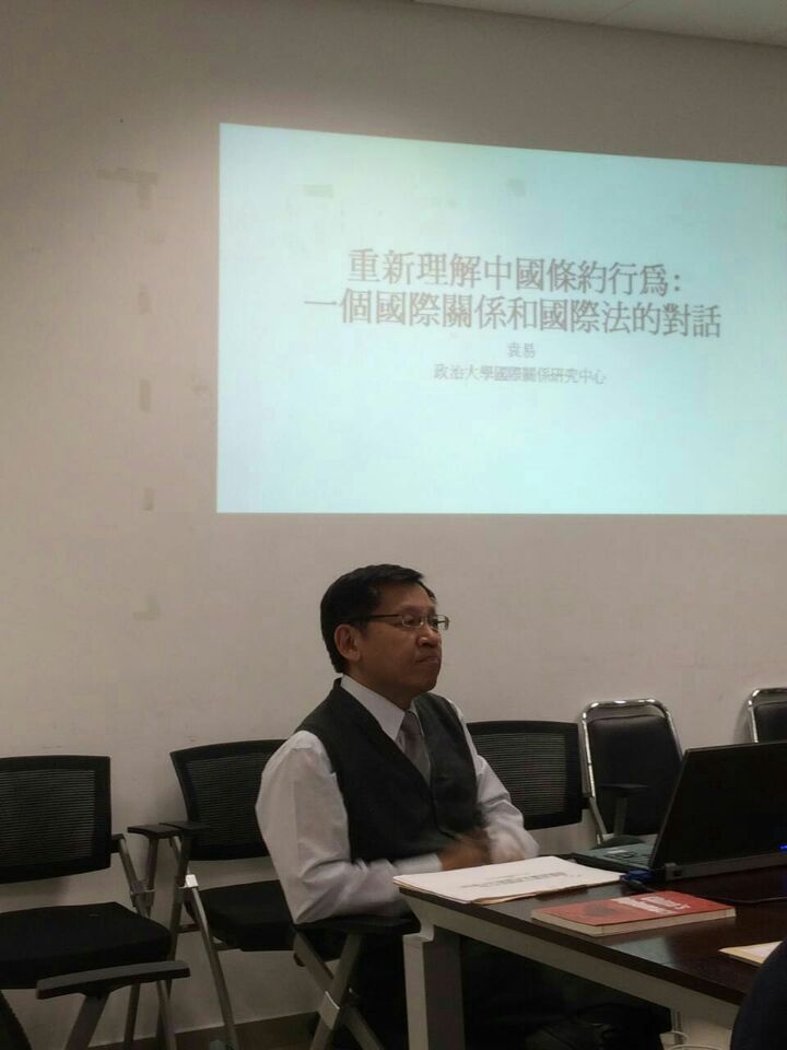 2015年11月18日(周三)15:30-17:30,北外国关前沿沙龙第二期活动在北京外国语大学西院综合楼举行。本次沙龙主题是“重新理解中国条约行为:一个国际关系与国际法的对话”。本次沙龙学术活动由袁易教授(台湾政治大学国际关系研究中心教授)主讲、尹继武老师(pp电子模拟器官网副教授)主持,并邀请王明进(pp电子模拟器官网教授、副院长)和张效民(pp电子模拟器官网副教授)两位老师作为评议人。本次沙龙吸引了来自北京外国语大学和中国人民大学的近二十名师生前来参加。