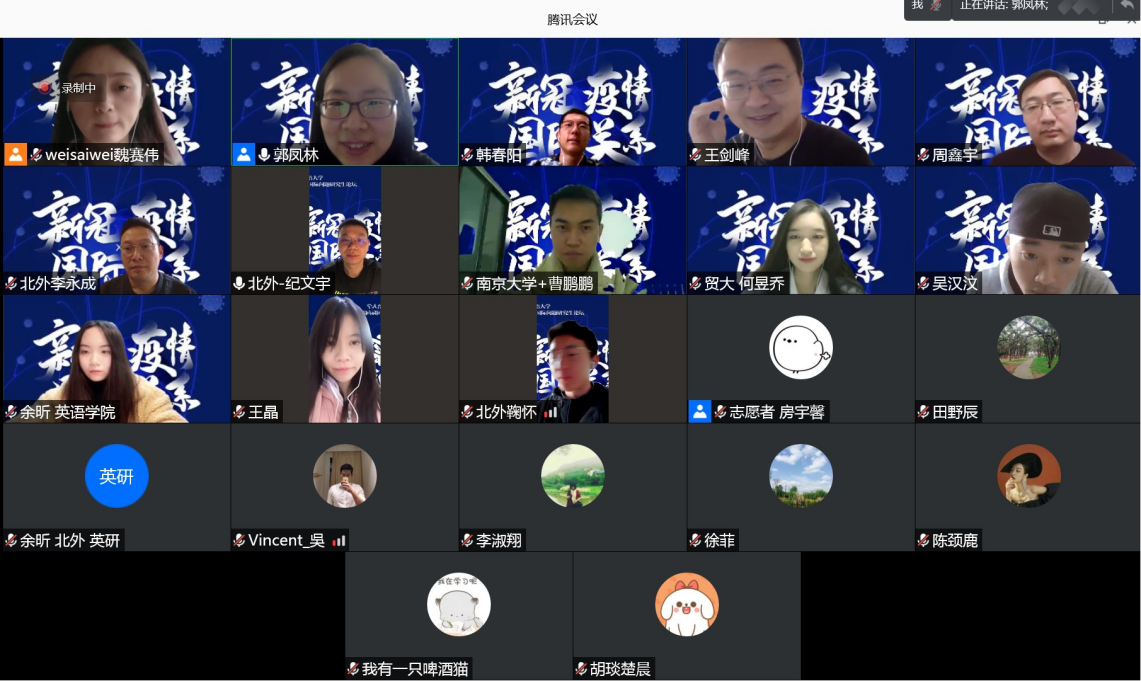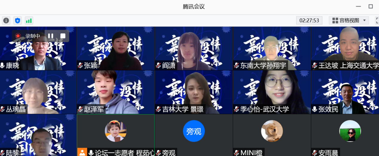 2020年11月25日,由pp电子模拟器官网主办的第十一届国际问题研究生论坛在线上举行。论坛以“后疫情时代的中国与世界”为主题,共收到来自全国各高校的一百余篇投稿论文,经过评委筛选,共有来自中国人民大学、复旦大学、南京大学、吉林大学、同济大学、北京外国语大学、中国社会科学院大学等著名高校的40余篇论文入选论坛大会发言。本次论坛为有史以来规模最大、参会人数最多的一次,大家畅谈国关研究,共襄学术盛宴。