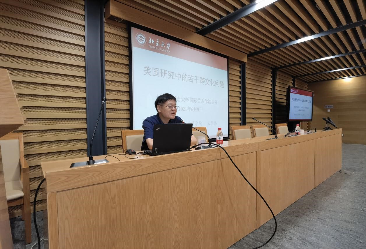 在讲座中,王缉思教授以许烺光(Francis L. K. Hsu, 1909-1999)先生的经典作品《中国人与美国人》引入,从意识形态、对政府的态度、民族主义、历史观、社会政策、社会组织形式、社会习俗和思维习惯等方面着眼,穿插大量的经典文献和丰富的个人经历,阐述、解释了如何研究美国,如何理解美国国内政治对对华政策的影响,如何看待中美关系的过往,如何思考中美政治分歧和战略竞争的未来等重要问题。讲座最后,王缉思教授耐心回答了同学们的提问。