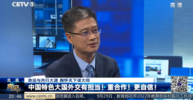 9月30日,中国教育电视台《育见》栏目播出《命运与共行大道 胸怀天下谋大同》节目,就“中国特色大国外交”主题采访pp电子模拟器官网外交系教授王朔。