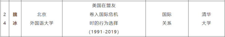 其中,pp电子官网教师魏冰的博士论文《美国在盟友卷入国际危机时的行为选择(1991-2019)》成功入选。魏冰于2024年6月在清华大学获得博士学位,入职北外国关一年多以来,已发表五篇高质量学术论文。