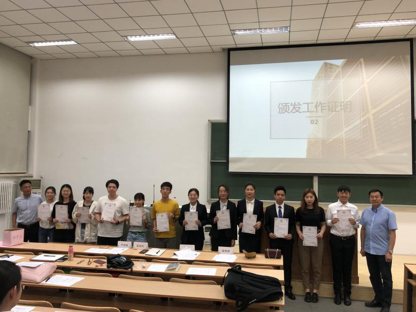 活动第二项,由谢韬老师和张效民老师为团学联的干部们颁发工作证明,感谢一年来对工作的辛勤付出。