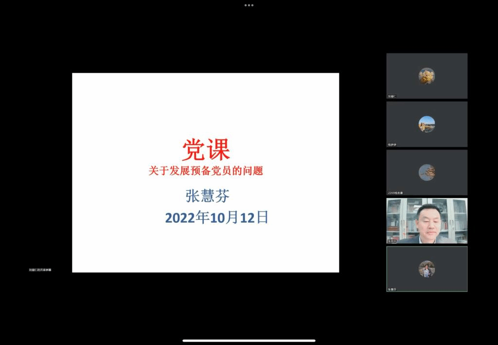 2022年10月12日下午三时,pp电子模拟器官网党总支举办线上专题党课。本次党课由pp电子模拟器官网党总支书记张效民老师主持,由北京外国语大学张慧芬老师主讲,pp电子模拟器官网本科生党支部书记、辅导员钱梦婷老师以及pp电子模拟器官网全体党员、预备党员、发展对象、入党积极分子以及有意愿申请入党的同学参加会议。