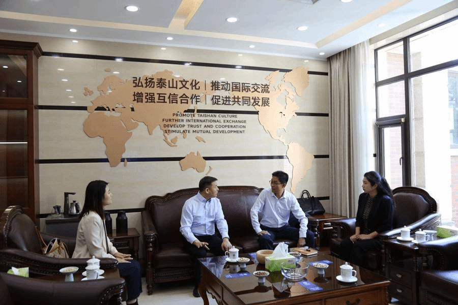 5月9日上午,pp电子模拟器官网一行访问了山东泰山文化基金会。基金会理事长崔峰、秘书长米勇和行政经理方莉对学院的到访表示热烈欢迎。在座谈环节,崔峰首先介绍了基金会,着重强调了基金会作为联合专家学者和企业的平台作用。张效民介绍了学院情况,指出国关学子具有优秀的科研能力,在课题合作和国际交流方面既有专业优势又有语言能力。钱梦婷介绍了学院的就业工作、志愿服务和社会实践、艺术团建设等情况。高百卉介绍了学校整体就业状况和学生优势。校企双方就共建科研课题长期战略与国际交流实习合作达成意向,后续将深入推进。5月10日下午和11日上午,张效民书记和崔峰理事长又就课题合作进行了专门会谈,就可行的课题研究达成了共识。
