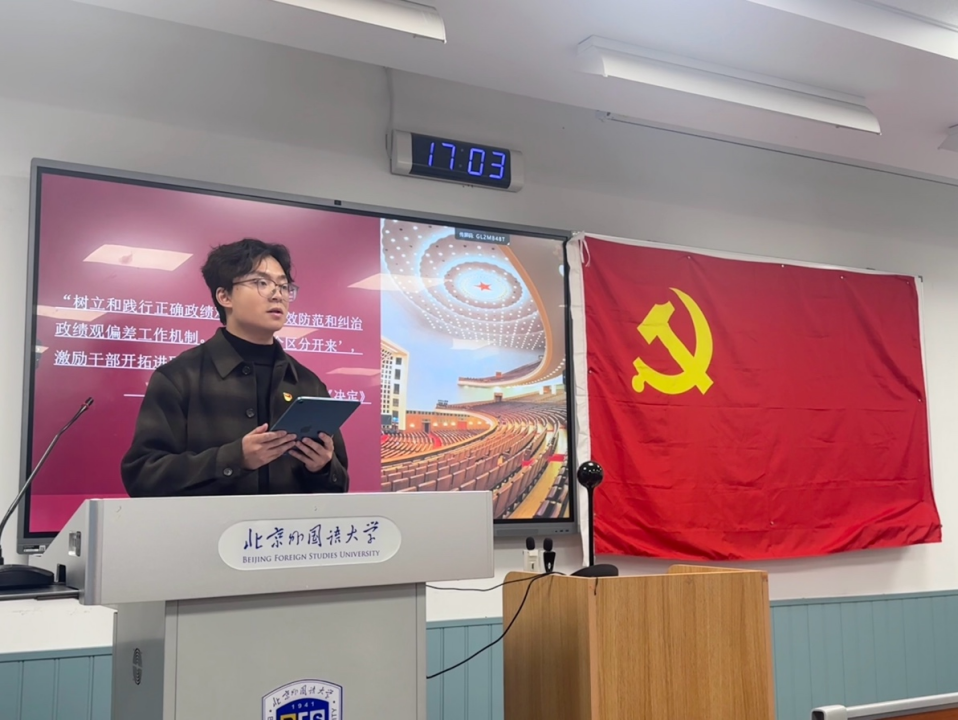 2024年10月23日下午,pp电子模拟器官网本科生党支部理论学习活动在逸夫楼203顺利开展。本期理论学习由本科生党支部书记苏莞舒主持,21级党支部成员吉瑄彬和孙至善主讲。