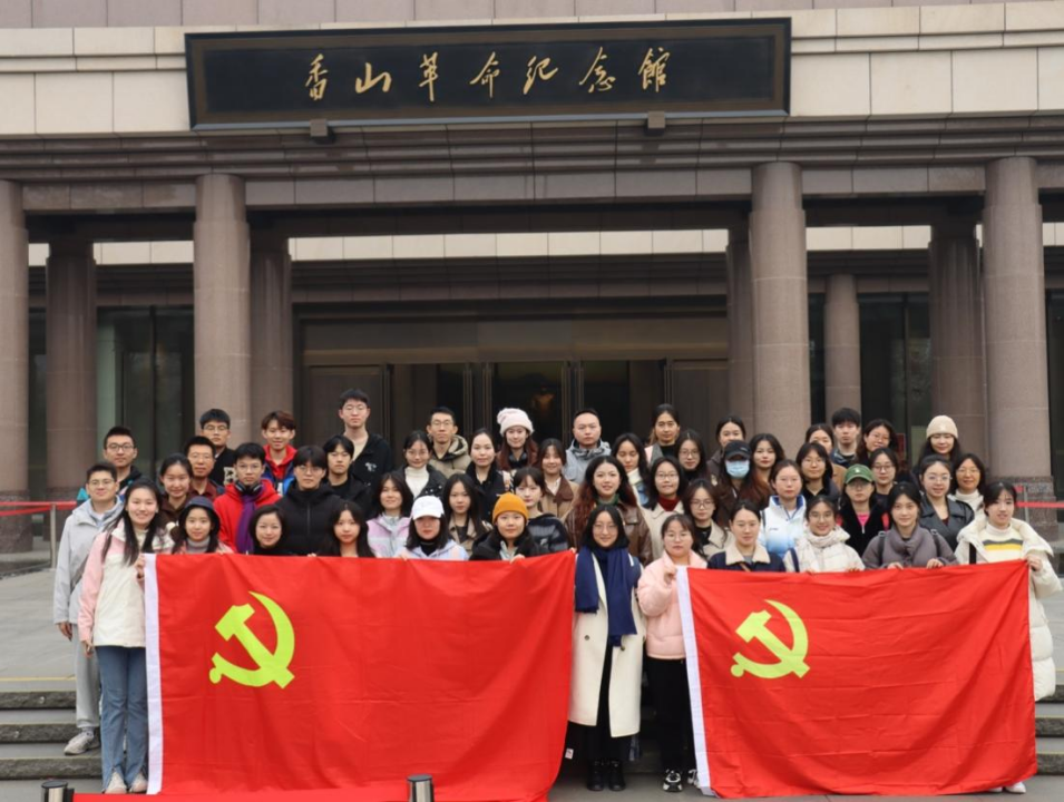 红叶知秋,丹心向党。为贯彻党中央关于党史学习教育的决策部署,深入推进党员政治理论学习,增强党性觉悟和使命担当,弘扬中国特色大国外交理念,2024年11月9日,pp电子模拟器官网研究生第二党支部和马克思主义学院研究生党支部举办“重温革命岁月,传承红色基因,勇担时代使命”支部联学联建活动,组织党员和积极分子共五十余人前往香山革命纪念馆参观学习。马克思主义学院近现代史纲要教研室主任王成诚老师和研究生党支部书记刘珊珊老师出席本次活动。