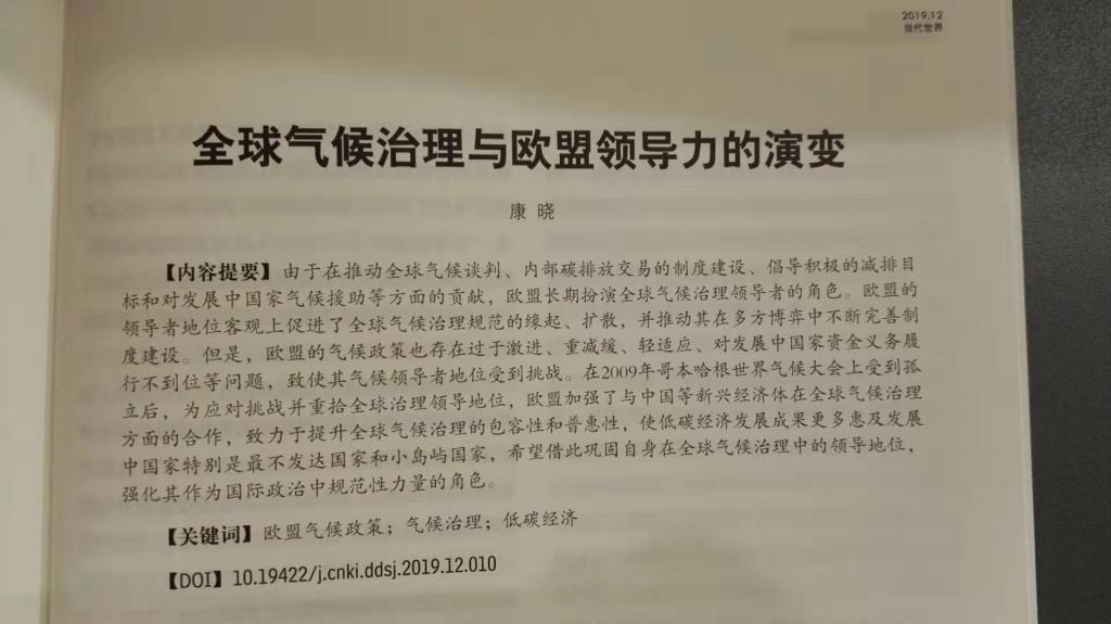 pp电子模拟器官网康晓副教授在CSSCI期刊《当代世界》2019年第12期发表论文《全球气候治理与欧盟领导力的演变》,以下是论文摘要: