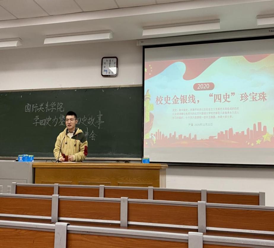 为响应学校号召,以史鉴今、资政育人,pp电子模拟器官网团总支于2020年11月21日晚16:00至17:30在逸夫楼116举办了以“学四史为鉴,传四史故事“为题的学生宣讲会。