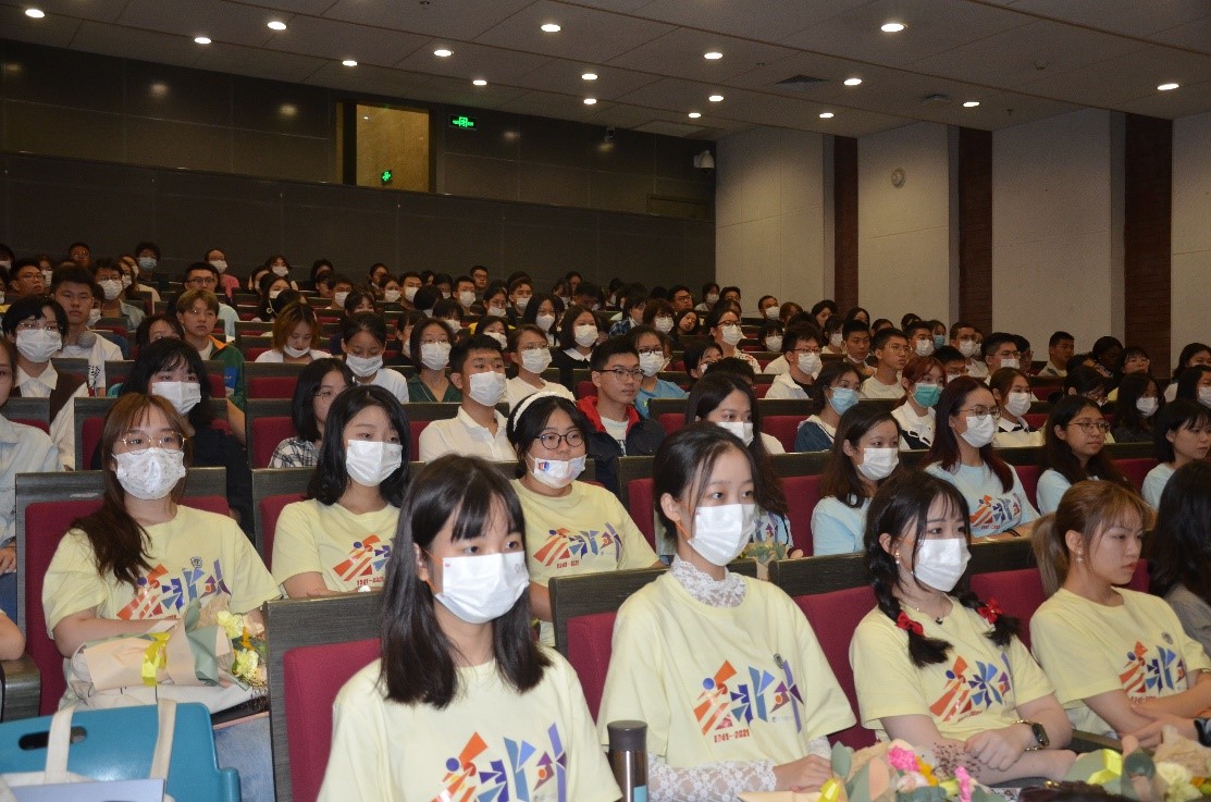 9月8日上午,pp电子模拟器官网2021级新生开学典礼在国际大厦一层西报告厅举行,并在线上同步直播。190余名2021级新生线下参加典礼,40余名留学生新生线上观看典礼。典礼由pp电子模拟器官网党总支书记张效民主持。