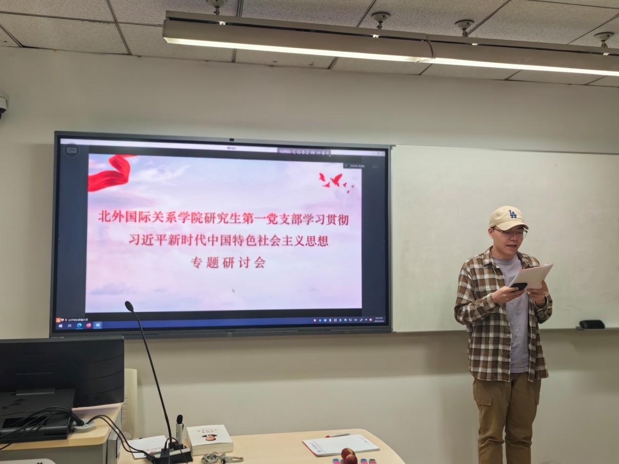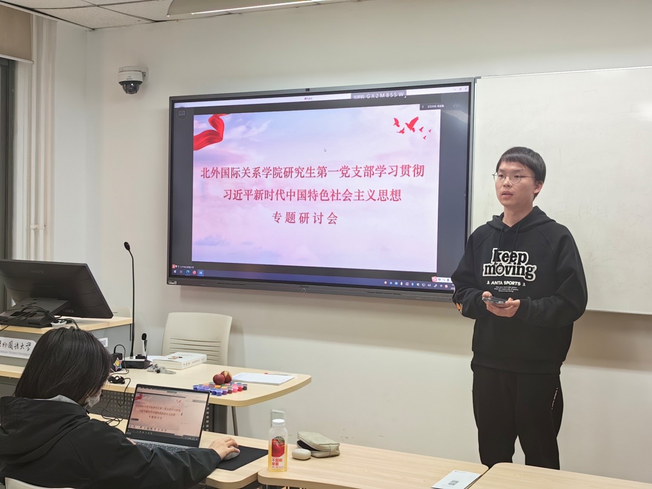 4月26日下午,pp电子模拟器官网研究生第一党支部在中文楼123教室举行“学习贯彻习近平新时代中国特色社会主义思想”主题研讨会,支部全体党员、发展对象和入党积极分子参会,无法到场的同学线上参会,组织委员杨孟昊主持会议。